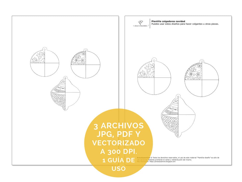 Obtendrás 3 archivos de plantillas en formato JPG, PDF y PDF vectorizado + 1 guía de uso PDF.