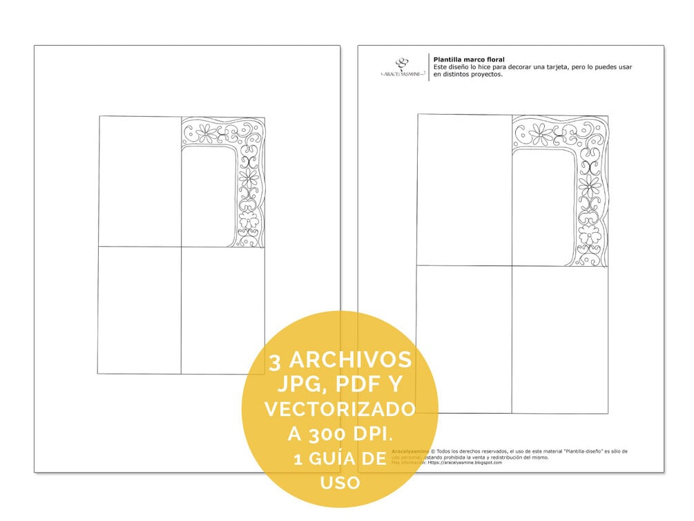 Obtendrás 3 archivos de plantillas en formato JPG, PDF y PDF vectorizado + 1 guía de uso PDF.